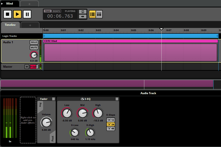 It’s not the cleanest solution, but it works. I’d like to check back on this later to find out why this workaround was the only way to get it working, but for now, I just want to have a working plugin that I can experiment with. For some final touches, I applied a 3-EQ in FMOD to make the sound softer: