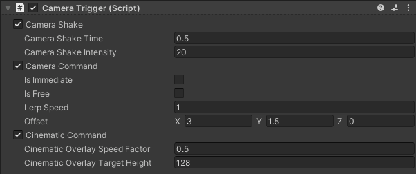 In addition to the camera trigger zones, we also had so-called cinematic events. These triggers really only lerped the cinematic bars in and out of view, but it helped make the game feel more immersive!