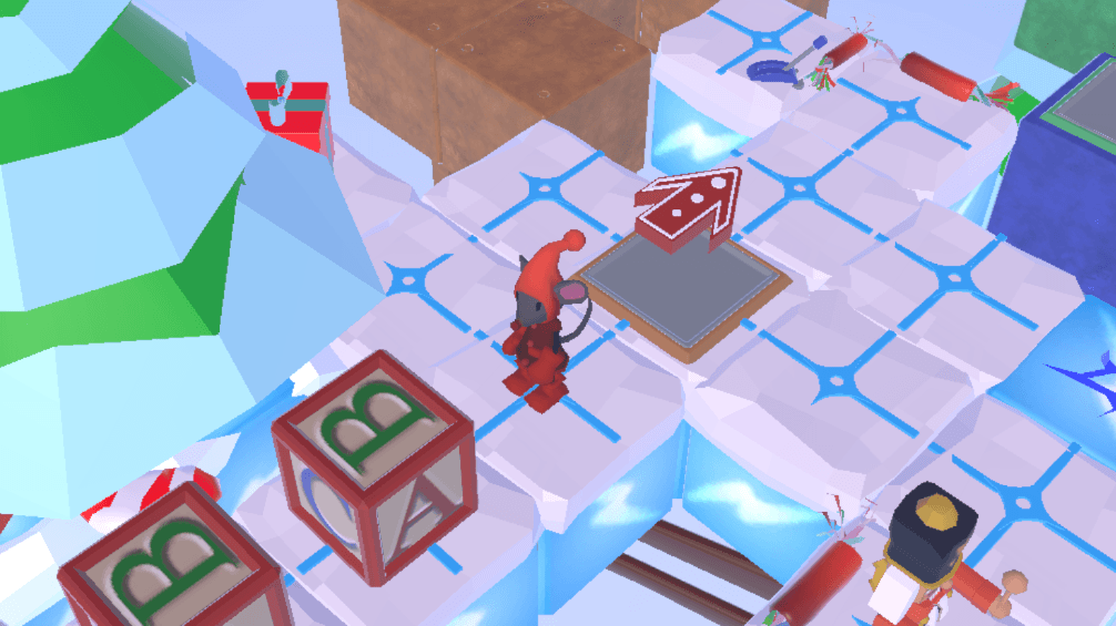 Enemies were easy to implement. They just listened for their turn event, then did their thing. Our sawblade is just a death zone which moves back and forth across its path. The Crocodiles were static objects that hold death zones in front of them, but can be defeated if approached from behind or the sides. The Nutcracker reused the same movement system as the sawblade! And just like the crocodiles, it can also be defeated by sneaking up on it!